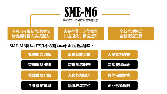 在一般情况下,我们对中小企业的专项辅导项目,都会分为人才、方法与持续改进三个维度进行,分别帮助解决中小企业管理体系搭建持续提升管理等一系列问题。二,旺村咨询中小企业管理优化框架